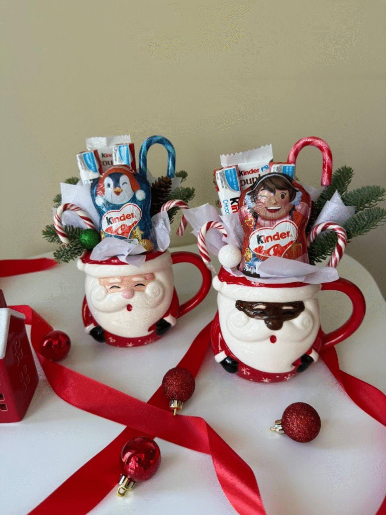 Candy cane-inspired mugs bring a festive and classic feel to your gift. The seasonal stripes or red-and-white designs create a cheerful, calming aesthetic that fits perfectly with holiday décor. This is a simple yet effective way to make a gift feel special.