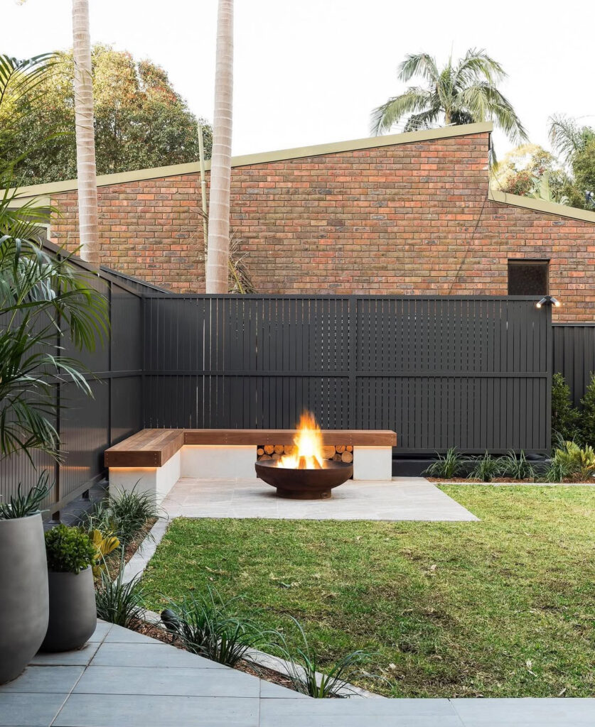 Small patio? No problem. A sleek metal fire bowl tucked into a cozy corner can make a big impact. Add a few stylish chairs or built-in benches to maximize space and comfort. It’s proof that even compact patios can feel luxurious with the right layout.