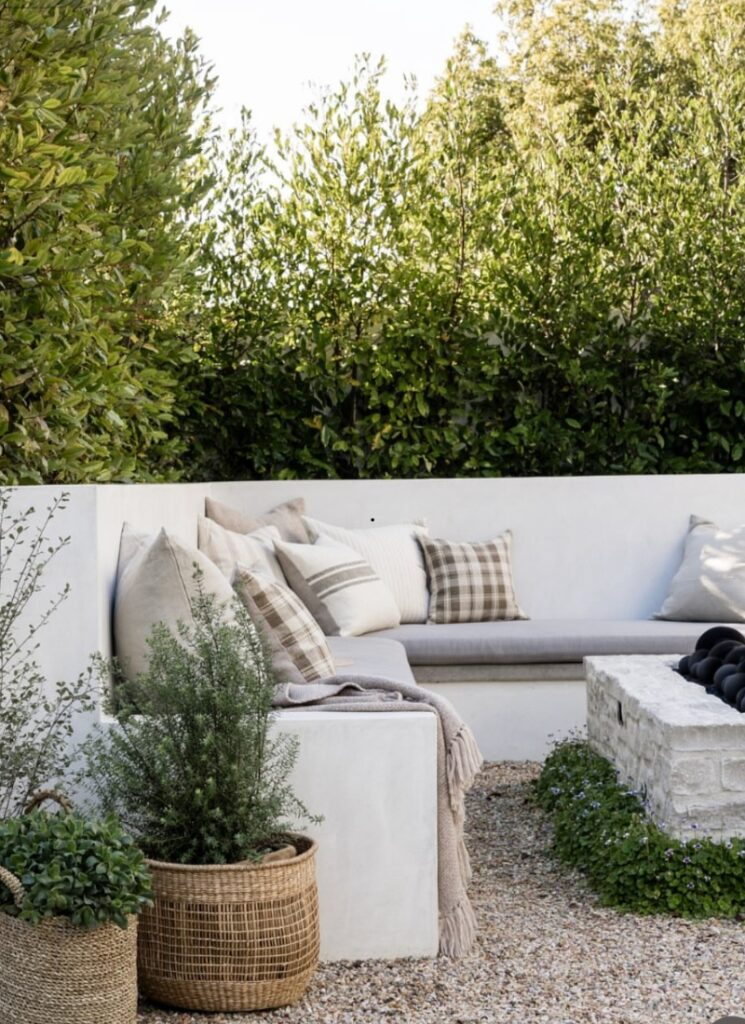 19. Built-In Fire Pit Concepts with Soft Neutrals & Texture