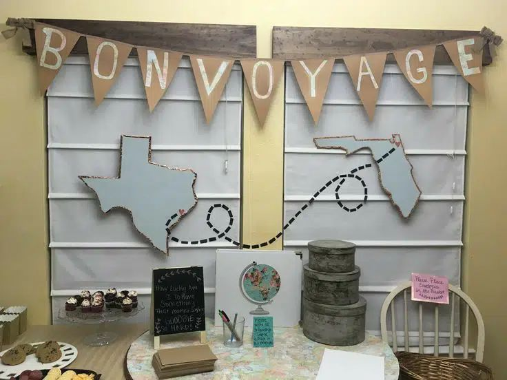 This going away party idea emphasizes optimism and the possibilities that lie ahead. Display a banner or sign with the message, and consider adding thematic decorations like globes, maps, or mini suitcases. It’s an uplifting way to acknowledge the transition while keeping the party lively and inspiring.