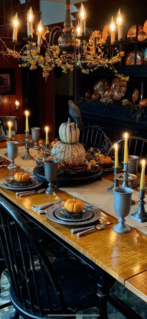 Not every Halloween tablescape has to be dramatic—sometimes simple and calming works best. Soft lighting, neutral tones, and natural textures can create a relaxing atmosphere that still nods to the season. A calming table design is ideal for smaller, intimate gatherings.
