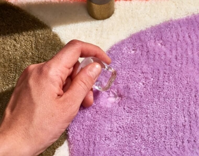 Heavy furniture can leave deep dents in carpets, but ice cubes can lift them out. Place a cube on each dent and let it melt completely. After absorbing the excess water with a towel, gently brush the carpet fibers upward with a toothbrush. The area will look refreshed and smooth again, no professional cleaning needed.