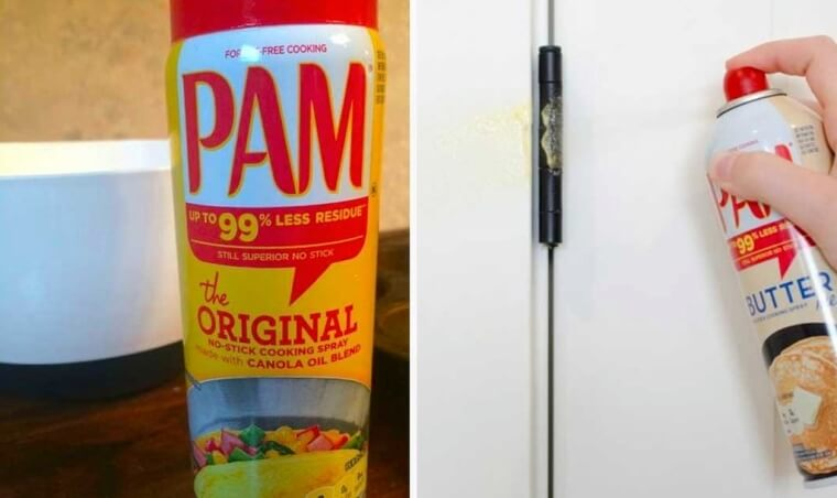 A squeaky hinge on a door, cabinet, or window can be fixed quickly with a light spray of cooking oil. The lubricant reduces friction, instantly stopping the noise. It’s a fast, inexpensive alternative to commercial lubricants.