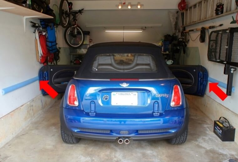 In tight garages, car doors can easily bump into walls and get scratched. Cut a pool noodle lengthwise and attach it to the wall where the door makes contact. The soft foam cushions the impact, protecting both your car and your garage walls. It’s a cheap and effective solution for small spaces.