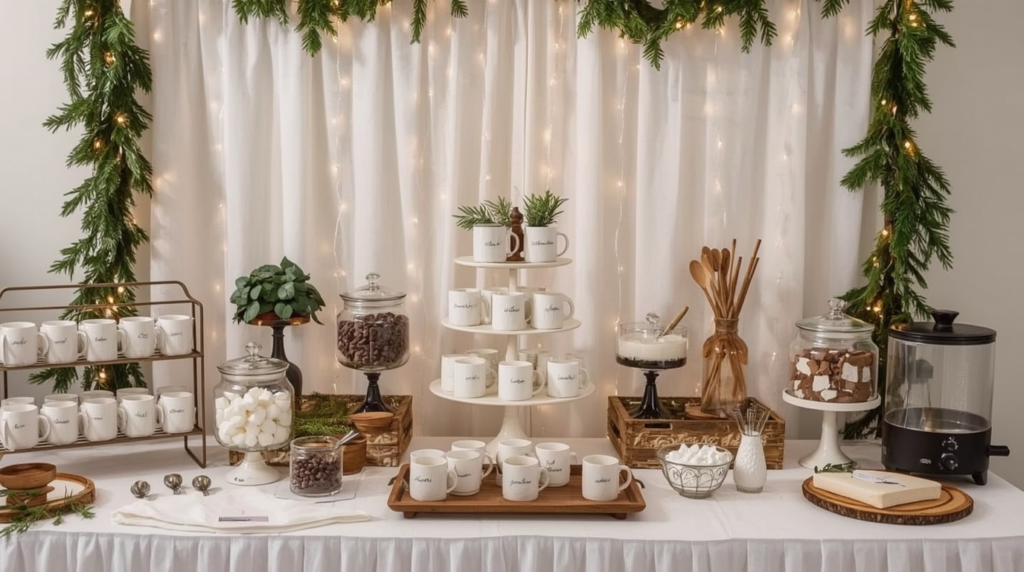 The key to making this station memorable is attention to detail. Coordinated linens, matching serving ware, and a balanced color palette can elevate even simple ingredients. When styled carefully, your cocoa bar becomes more than just a drink station—it becomes a centerpiece that guests will remember long after the event ends.