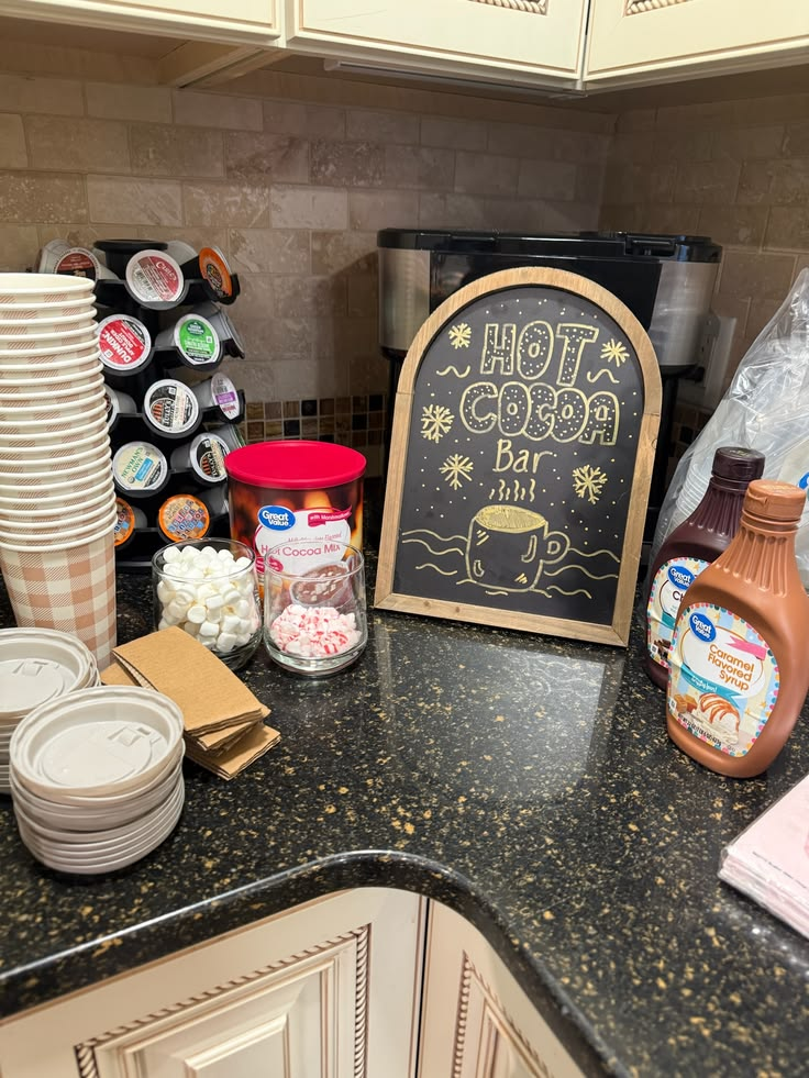 For a charming and family-friendly approach, create a cocoa bar that feels playful yet organized. Use fun signage, illustrated labels, or seasonal graphics to add personality. Choose bright mugs or patterned napkins to bring cheerful energy to the setup.