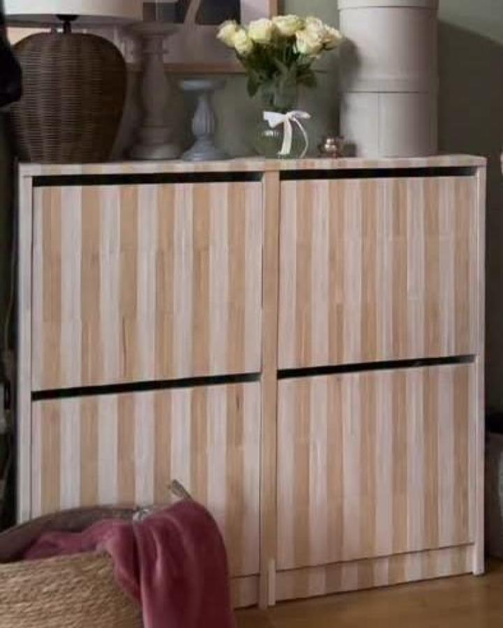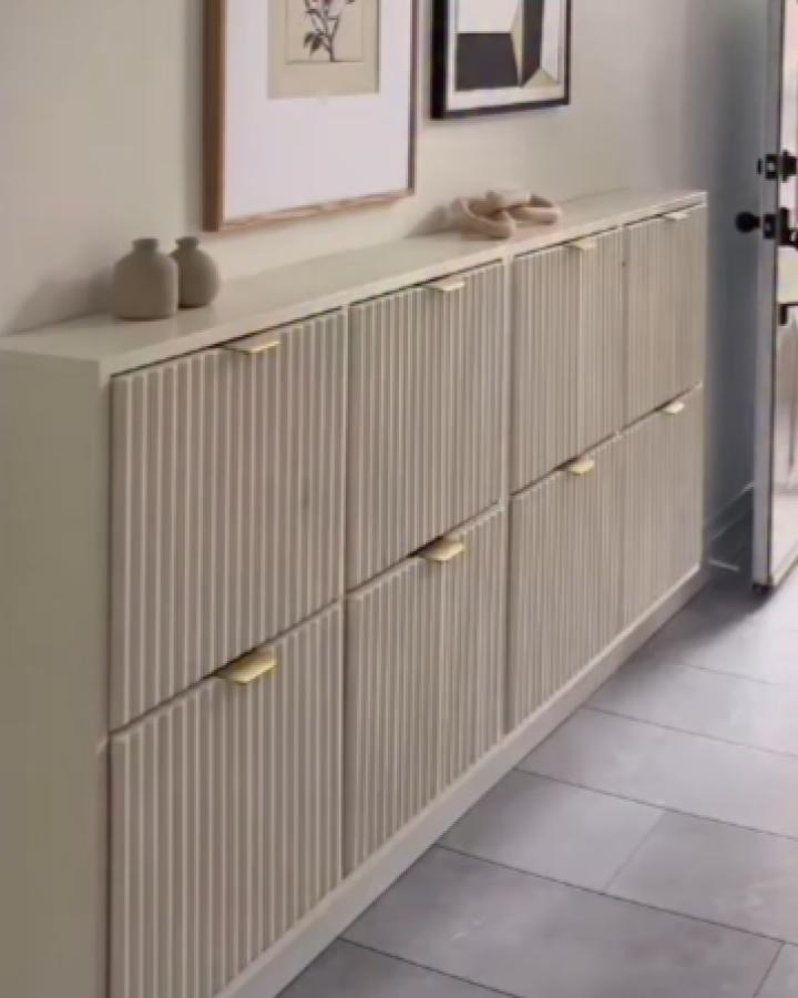 This treatment turns a simple shoe cabinet into a stylish, bespoke-feeling piece, demonstrating how texture and small details transform everyday furniture.