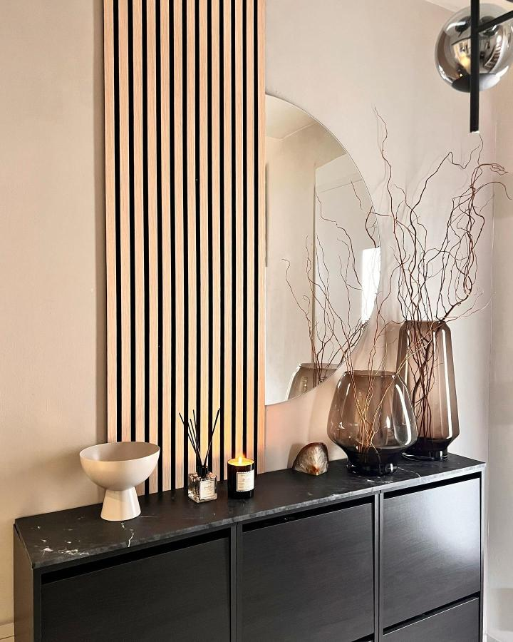 This Ikea Bissa makeover uses warm wood paneling to elevate plain drawers into a cozy, stylish staple. Alternating light and medium wood tones create visual texture without overwhelming the room.