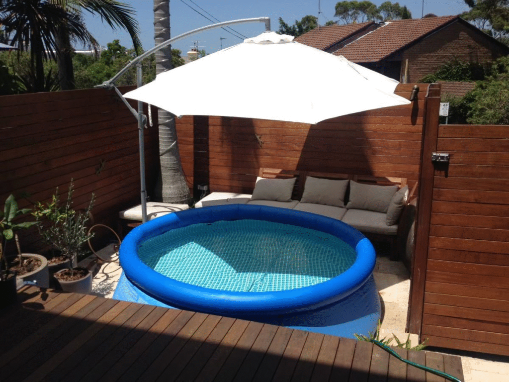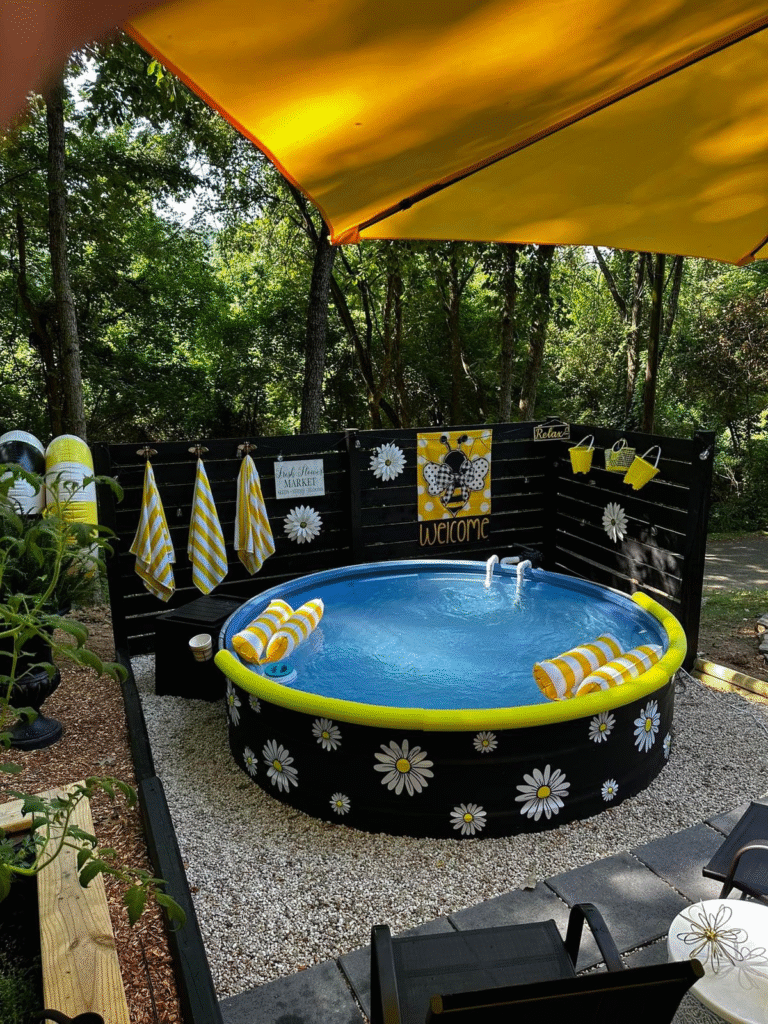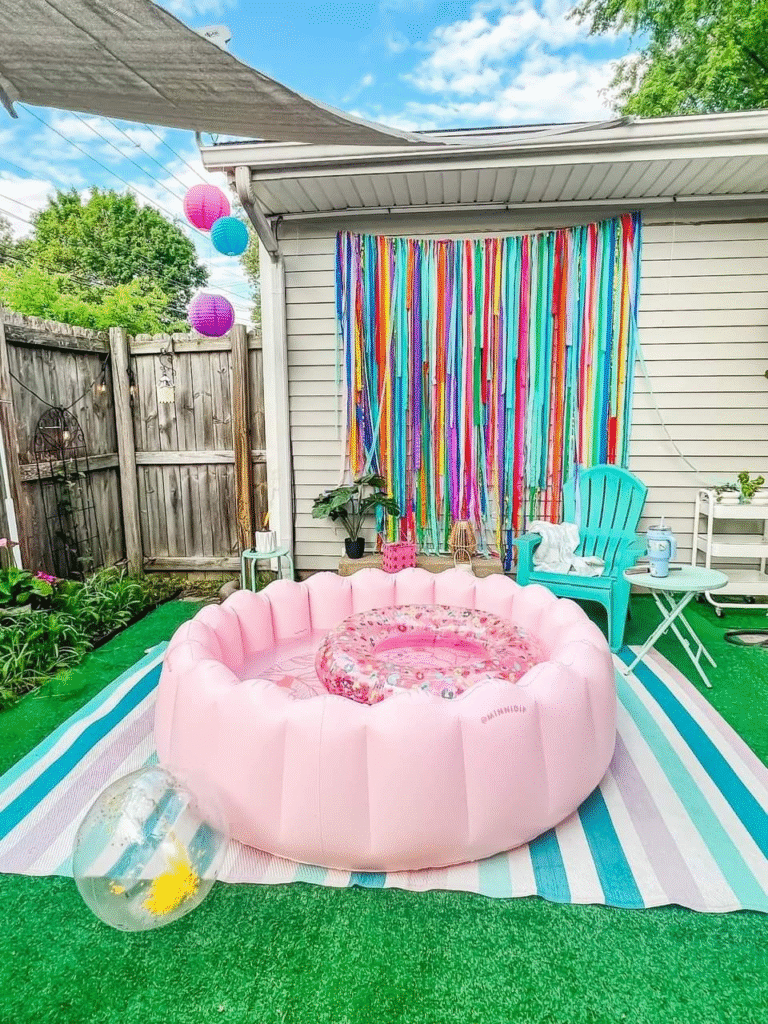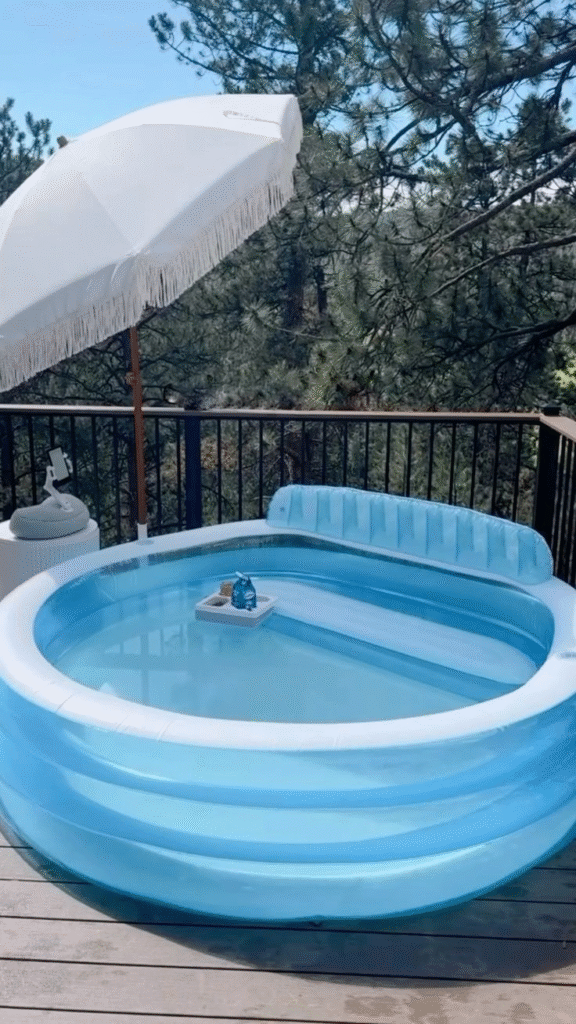 Create a dreamy backyard escape with this airy inflatable pool idea. It’s light, inviting, and perfect for relaxing in style on hot summer days.