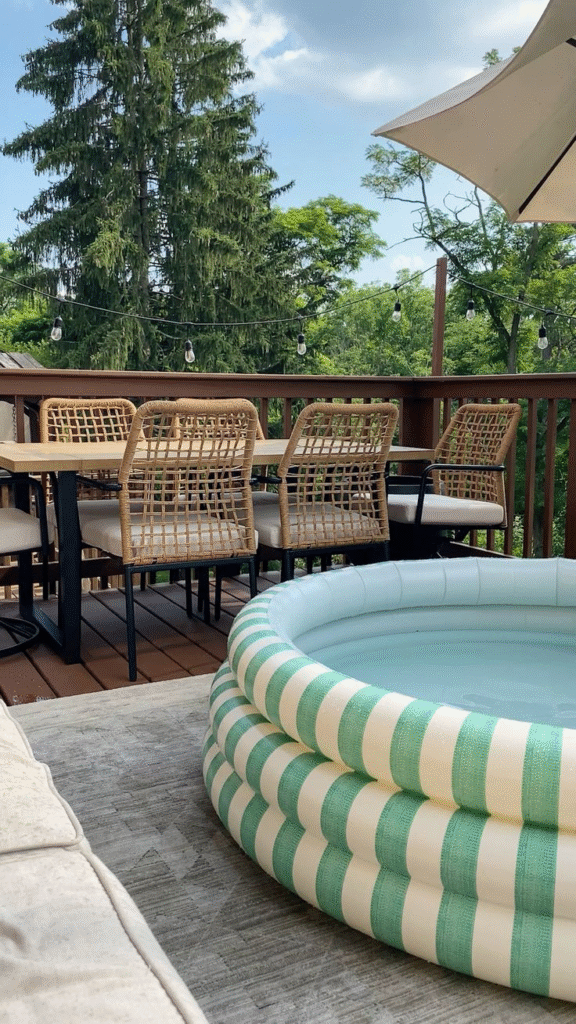 If you’re seeking a calming inflatable pool, this idea delivers. It offers a serene vibe and a peaceful spot to unwind, ensuring your outdoor space feels balanced and inviting.