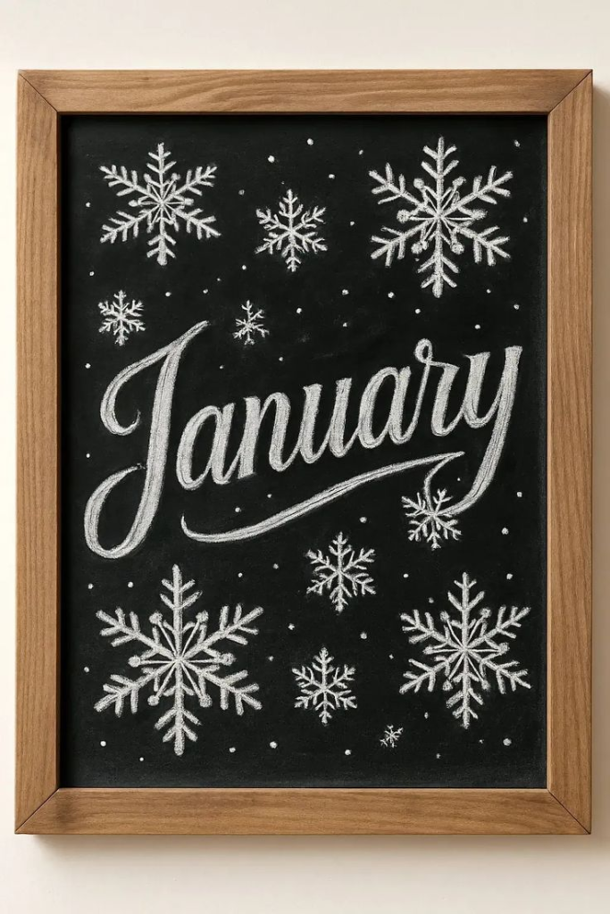 If you prefer simplicity, a clean, minimalist chalkboard design works beautifully. Use crisp lettering and a restrained color palette to convey the essence of January without overwhelming the eye. Add small decorative accents like snowflakes, stars, or subtle line art for visual interest. This approach is timeless, elegant, and perfect for creating a calm, welcoming space.