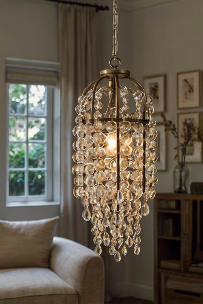 Hang the pendant low over a corner or beside the bed to create an intimate, focused pool of light. Ensure the bulb emits a warm, soft glow to maintain the tranquil ambiance.