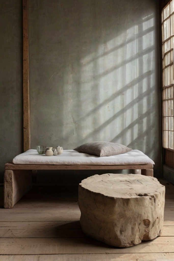 Wabi-sabi, the Japanese appreciation for imperfection, can be reflected through items that show the maker’s hand. Opt for slightly asymmetrical ceramics, rough-hewn wooden benches, or naturally wrinkled linen bedding.