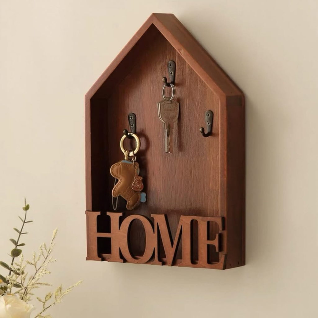 Timelessly shaped like a house with “HOME” carved at its base, this wooden holder exudes familiarity. Its hooks are simple, yet the piece radiates charm. Whether in a rustic farmhouse or modern apartment, it whispers welcome each time you hang your keys. Practicality meets sentimentality here, offering a small, enduring statement that elevates everyday routines.