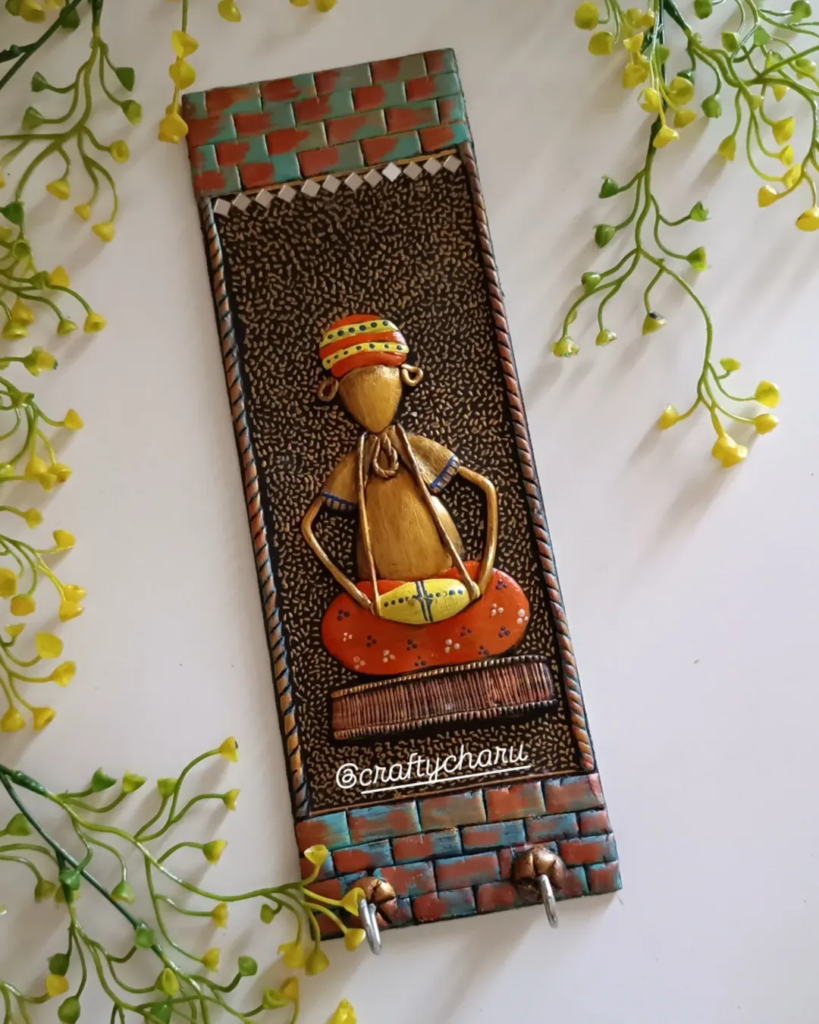 Textured, colorful, and fully handmade, this key holder celebrates artisan skill. Every brushstroke and figurine conveys craftsmanship and cultural storytelling. Perfect for homes that honor creativity, it pairs beautifully with plants or natural decor. It becomes a focal point, sparking conversation while serving its purpose. A functional object that doubles as an artistic statement.
