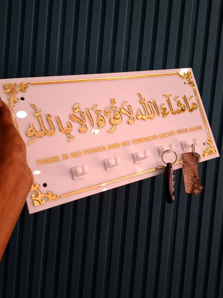 Gold Arabic calligraphy and subtle lighting elevate this acrylic key holder into a spiritual statement. Sleek, modern, and meaningful, it balances style with sentiment. Every time you use it, it’s a quiet reminder of peace and gratitude. Minimalistic yet expressive, this piece seamlessly integrates decor and intention, giving your entryway both elegance and grounding.