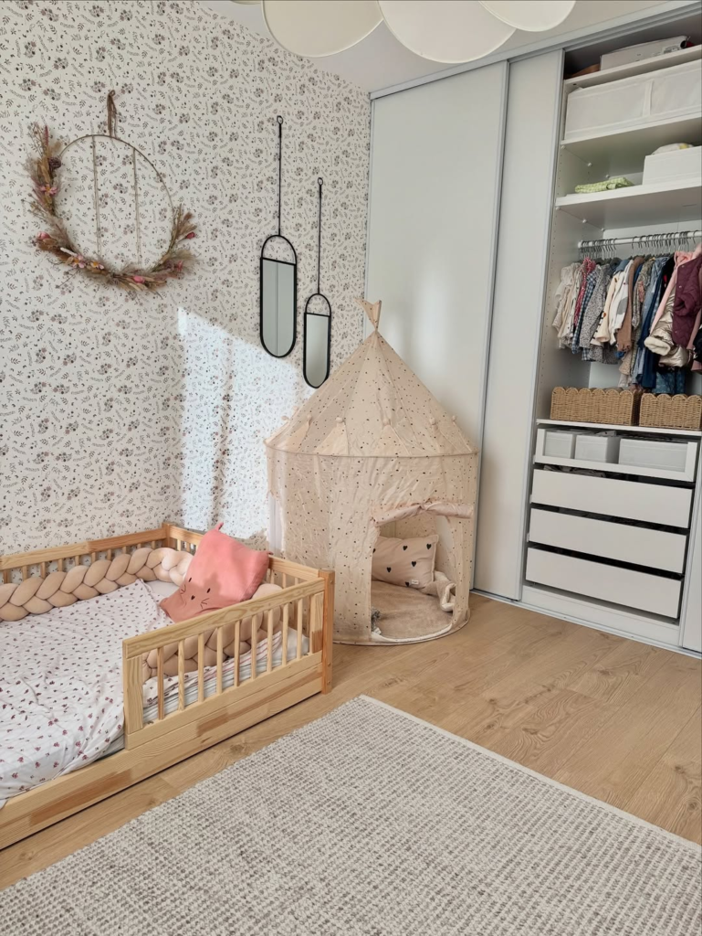 Clean lines, natural materials, and subtle decorative details make this bedroom a masterclass in simplicity. The layout leaves room for play and rest without clutter, giving the child space to explore freely. Minimal design doesn’t mean dull—the thoughtful touches keep the space warm, functional, and quietly enchanting. It’s a clever way to merge style and child-friendly practicality.