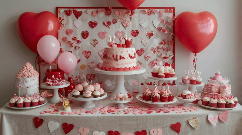 Light decorations prevent the space from feeling cluttered while still clearly celebrating Valentine’s Day. This approach ensures the décor complements the party rather than overpowering it.