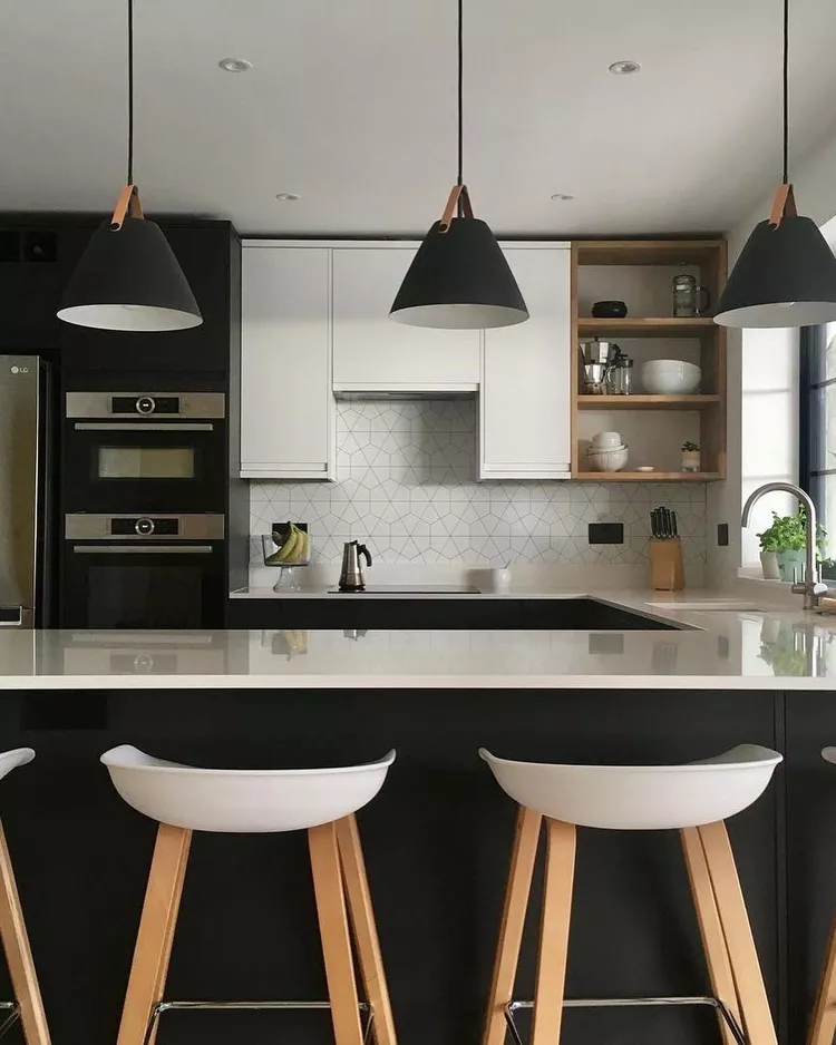Elevate your peninsula by installing pendant lights above it. This not only adds a touch of style but also creates a distinct separation between your cooking and dining areas without relying solely on harsh overhead lighting. Pendant lighting brings a warm, inviting glow, turning your peninsula into a focal point and enhancing both functionality and ambiance.