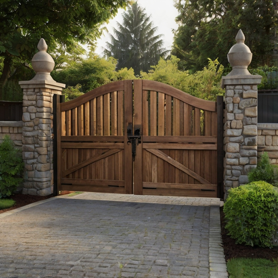 Wooden gates can be customized to suit many styles, from rustic farmhouse to modern designs. Depending on your space, you can choose between swing or sliding gates for convenience and functionality.