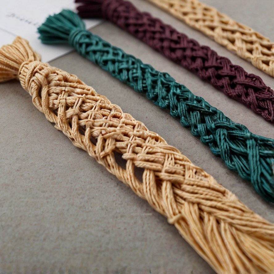Delicate macramé bookmarks combine simplicity and functionality. Knots create subtle patterns, while a tassel adds a decorative flourish.