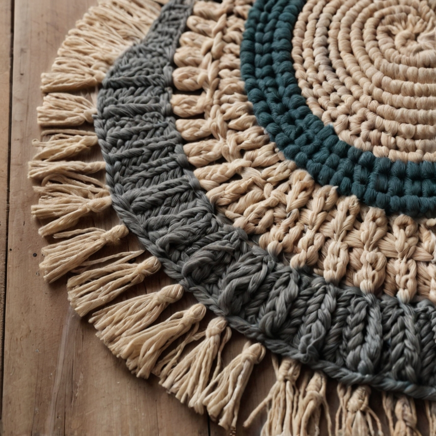 Circular macramé rugs bring warmth and texture to bathrooms. Dense knotting and fringe create a spa-like feel, while neutral tones suit minimalist spaces.