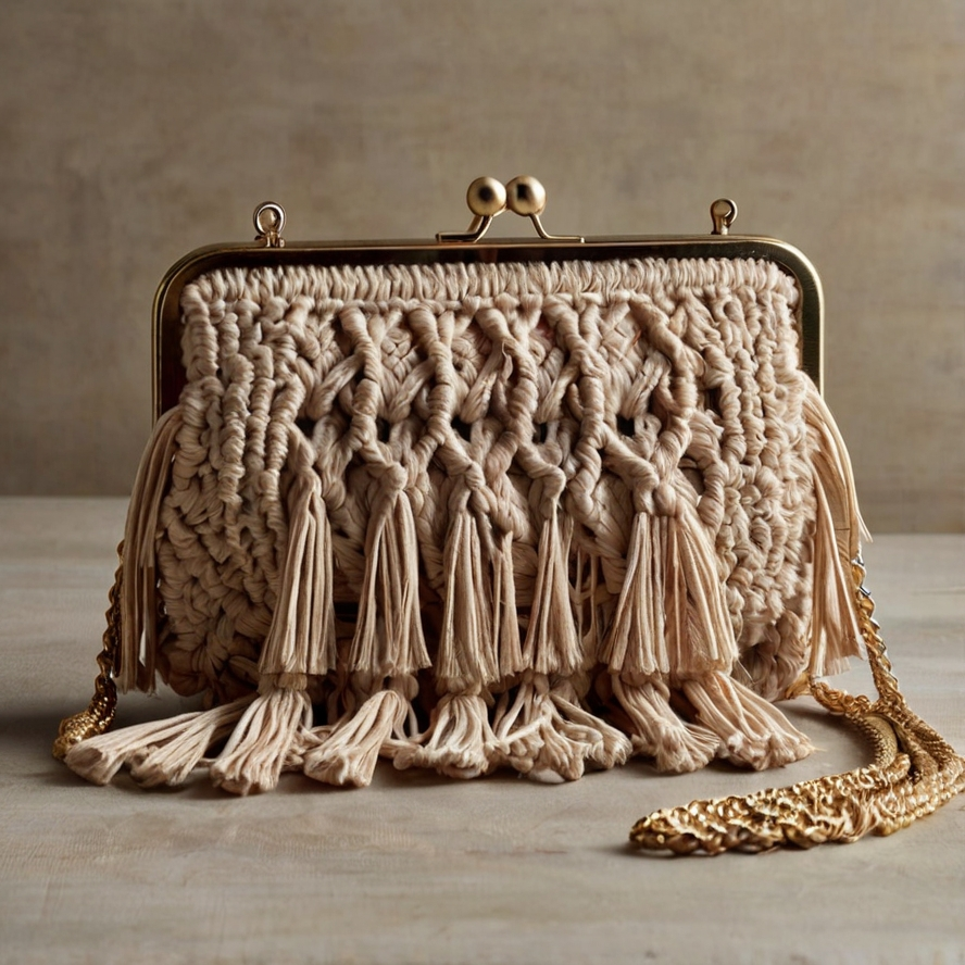 Macramé clutches combine elegance with boho flair. Textured knots and cascading fringe make them striking, while compact design ensures practicality.