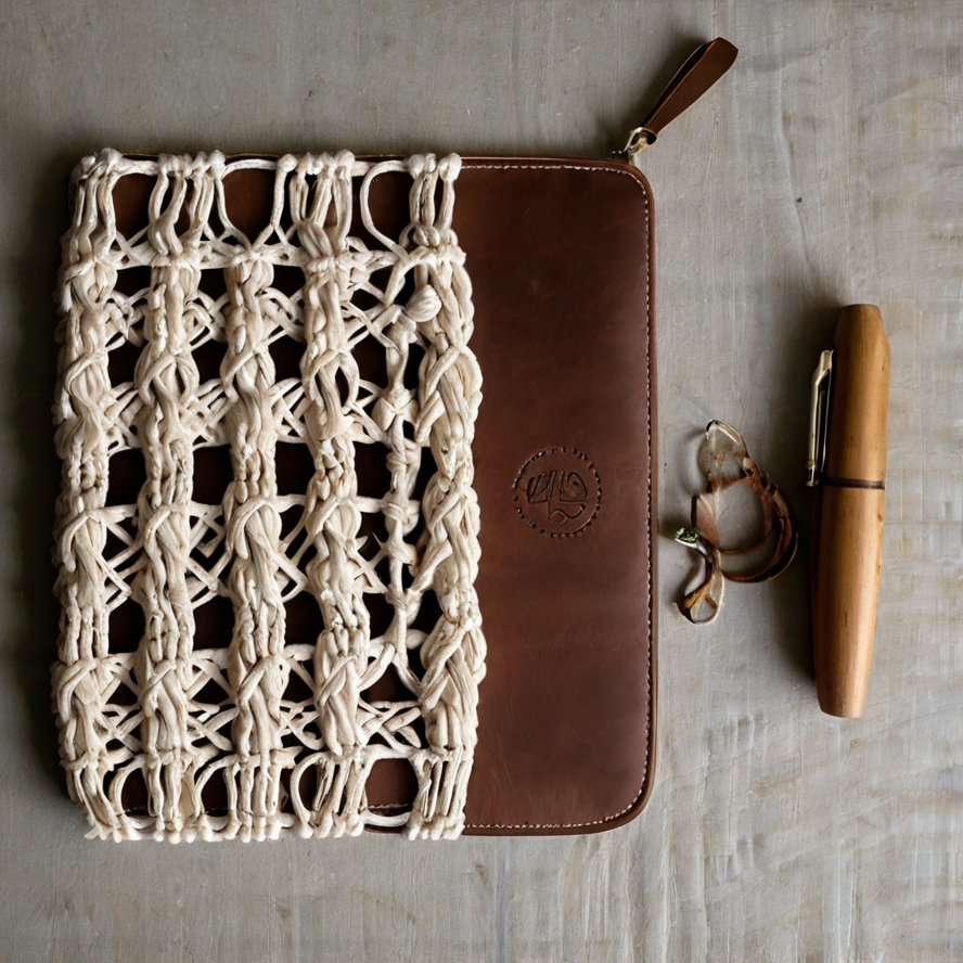 Combine protection and style with a macramé laptop sleeve. Open-weave knots paired with fabric lining offer breathability, durability, and a handcrafted aesthetic.