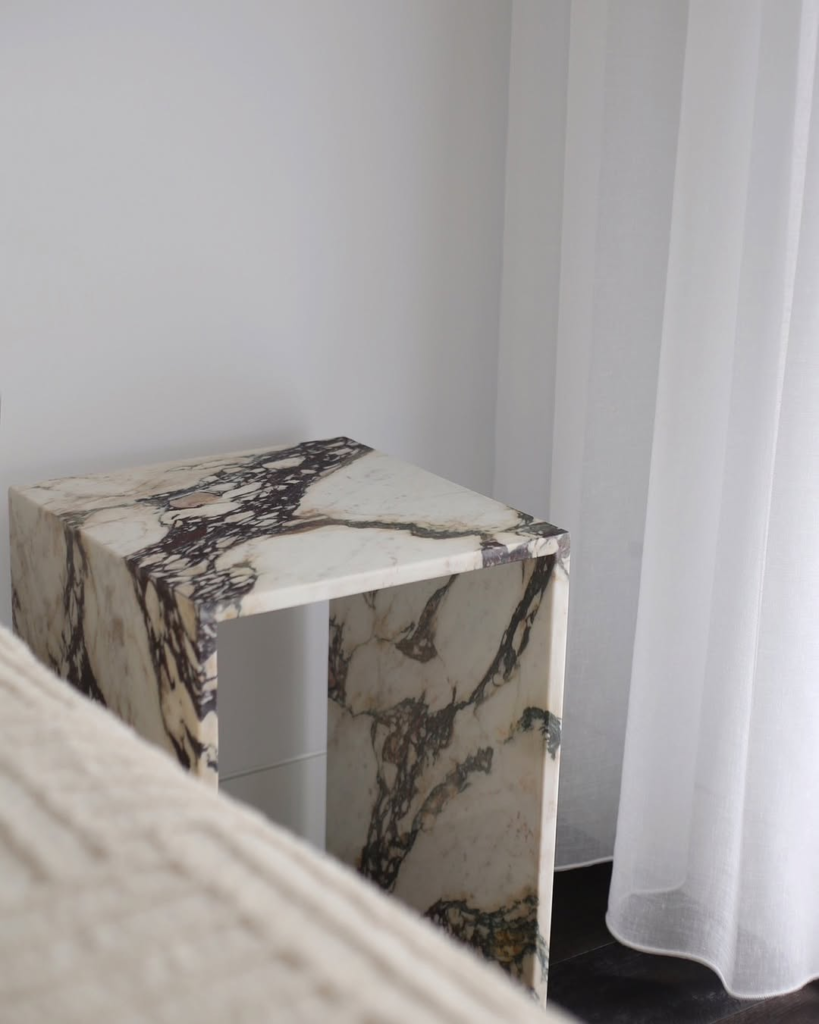 This chair exemplifies quiet, grounded elegance. Blocky proportions and smooth, light-toned marble catch light beautifully, enhancing the simplicity of the form. It adapts effortlessly to various spaces—from bedrooms to hallways—while maintaining a sense of intentional design.