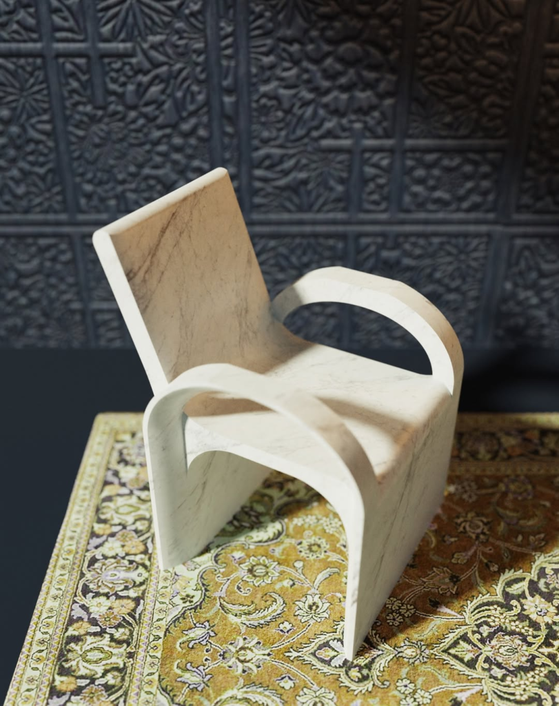 Here, marble dominates the narrative. Bold, luminous, and sculptural, the chair becomes the focal point of any room.