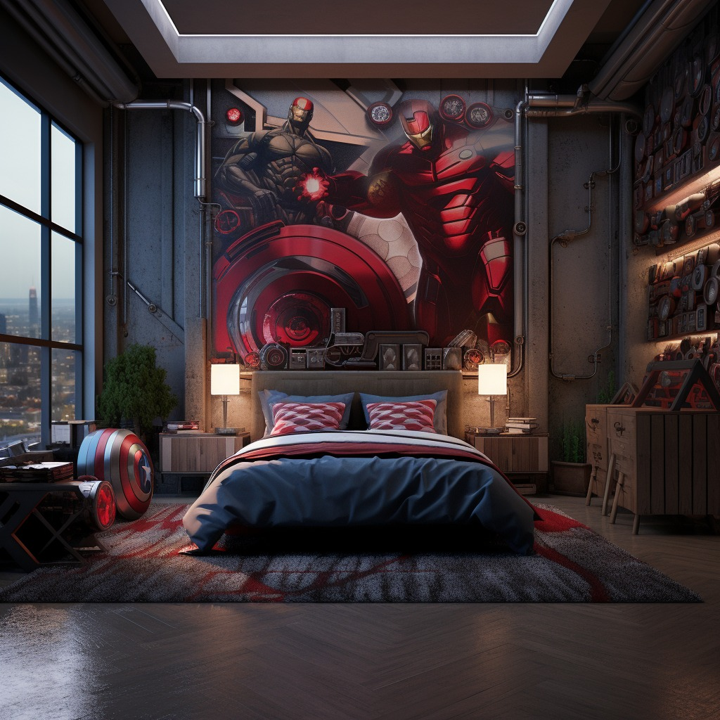 This design emphasizes that superhero-themed rooms can be stylish, functional, and future-proof.