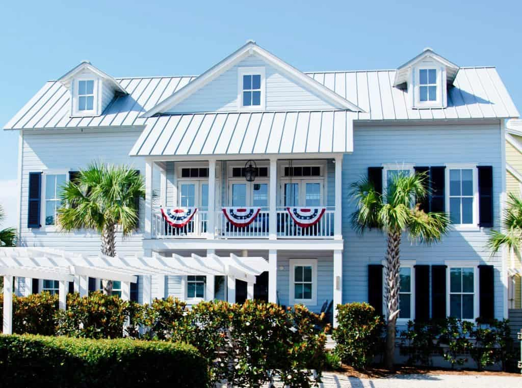 Blue roofs bring a refreshing, serene quality to your home’s exterior. Lighter shades of blue harmonize beautifully with pastel siding, cream-colored walls, or even light charcoal exteriors. Darker blues can anchor a home with bold or neutral walls, creating a subtle statement without overwhelming the design.