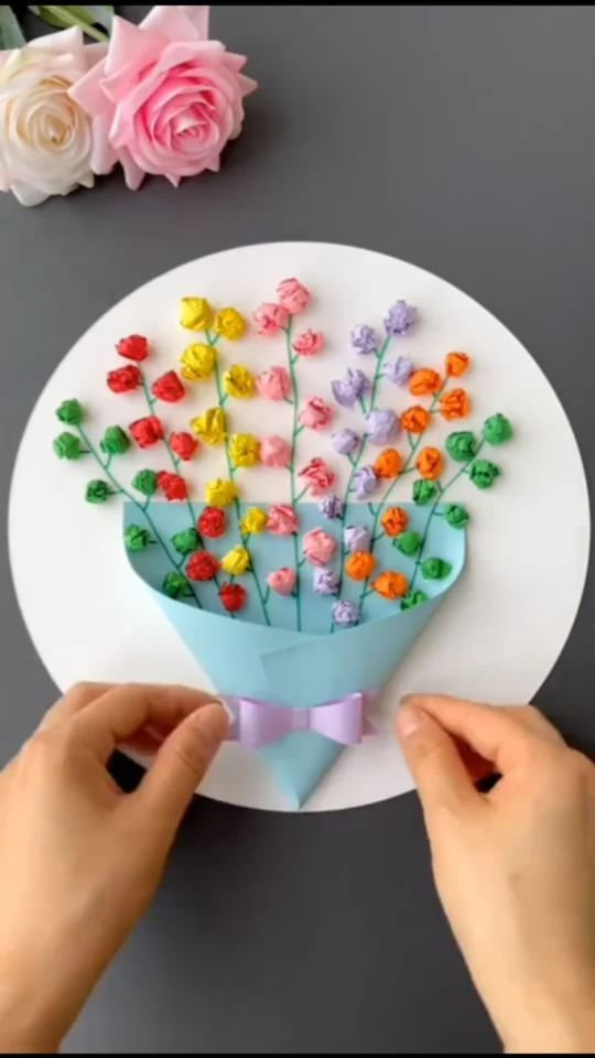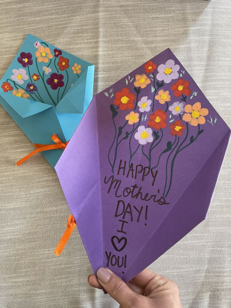 A bouquet-themed card is a creative and eye-catching craft for Mother’s Day.