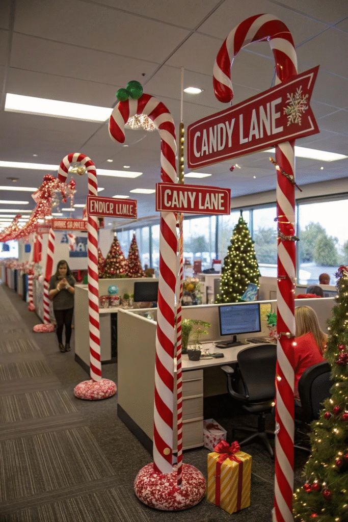 Turn your office into a cheerful Candy Cane Lane for the holidays.