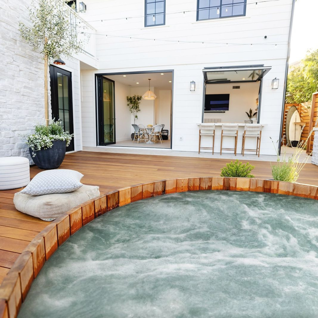 The tub feels integrated into the architecture, proving that hot tubs can complement, rather than compete with, surrounding design. The result is a private, sun-soaked retreat for leisurely mornings and barefoot relaxation.