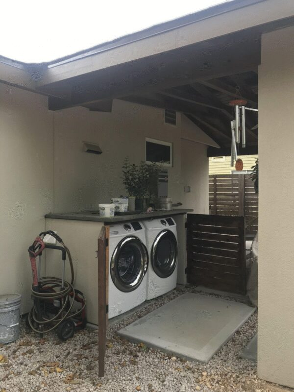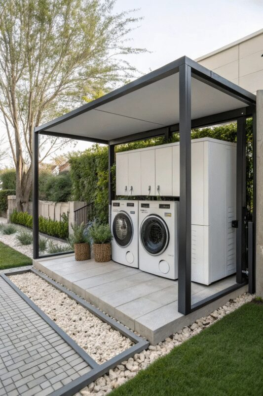 An undercover laundry room provides protection from the elements while maintaining accessibility and air flow. Covered layouts extend appliance life and keep the area functional year-round. These spaces are especially useful in outdoor or semi-outdoor settings, combining practicality with convenience.
