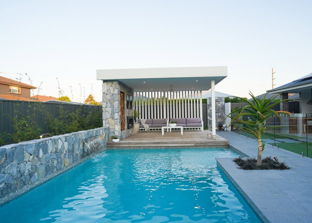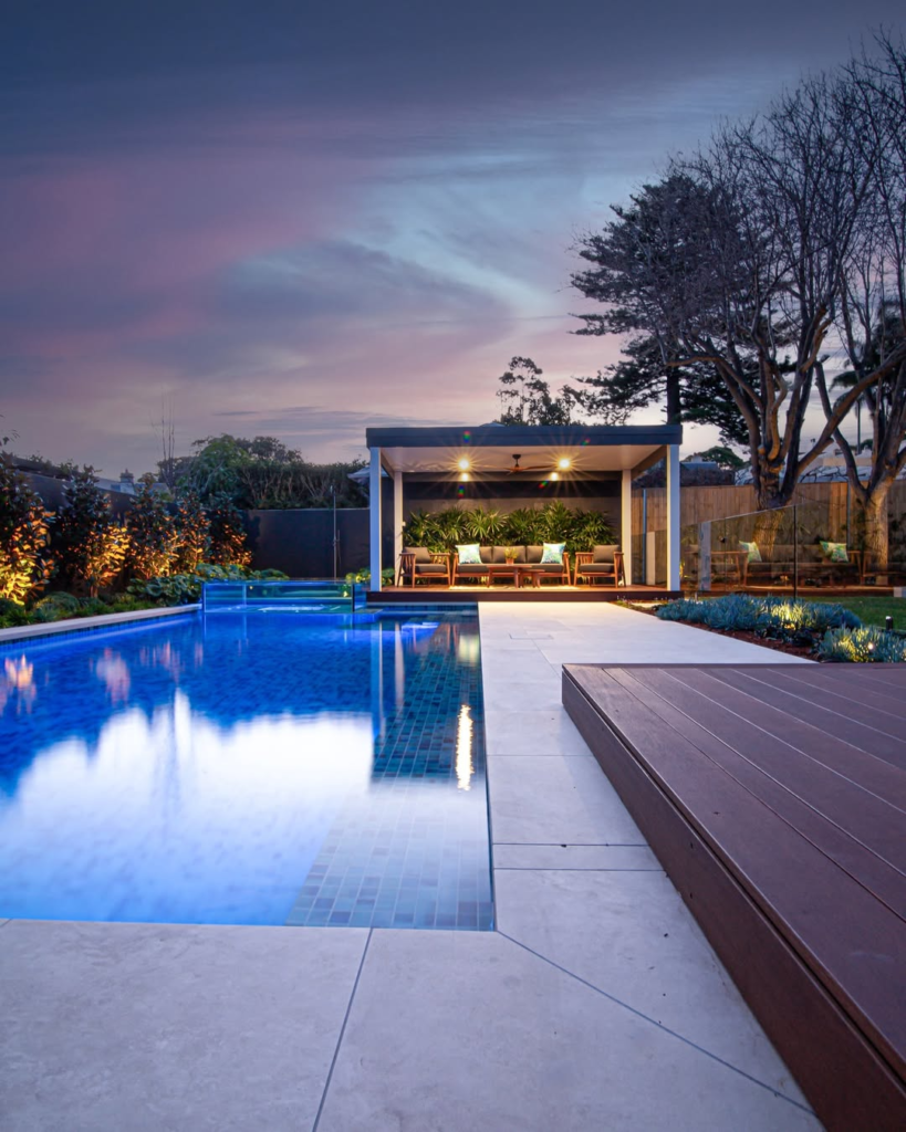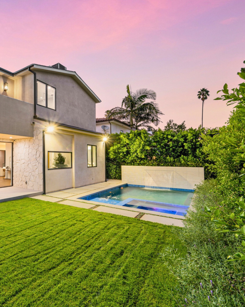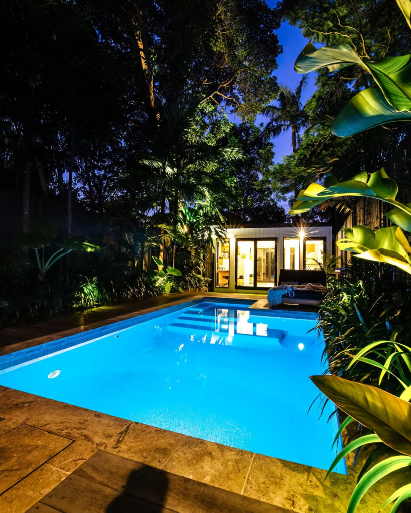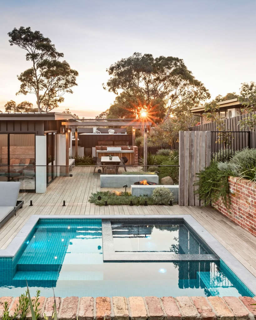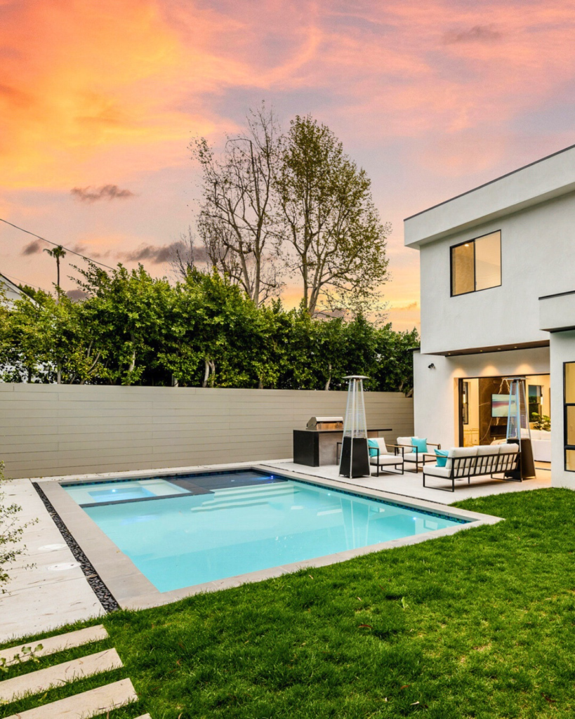 The balance between the cozy backyard and the modern pool design creates an atmosphere that feels intimate yet sophisticated. Evening swims or sunset lounging are elevated into serene, cinematic experiences.