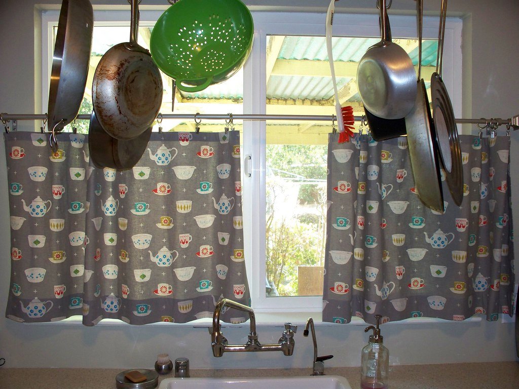 Your kitchen can have a completely new look and feel by adding drapes over the sink. Depending on the fabric