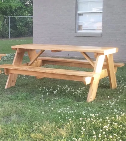 Once complete, adding a weather-resistant sealant or outdoor stain will protect the wood and help your picnic table withstand the elements for years to come.