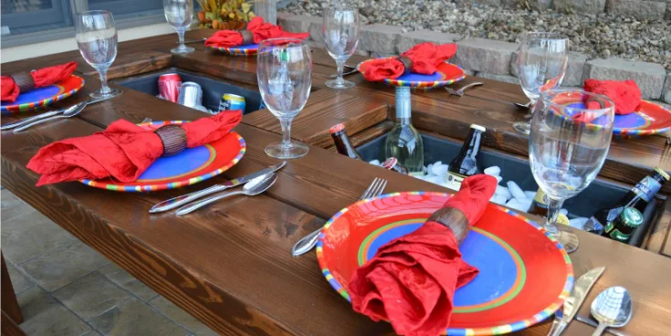 A picnic table with built-in coolers takes outdoor entertaining to the next level. Integrated ice compartments allow you to keep drinks cold without needing separate coolers cluttering your space.