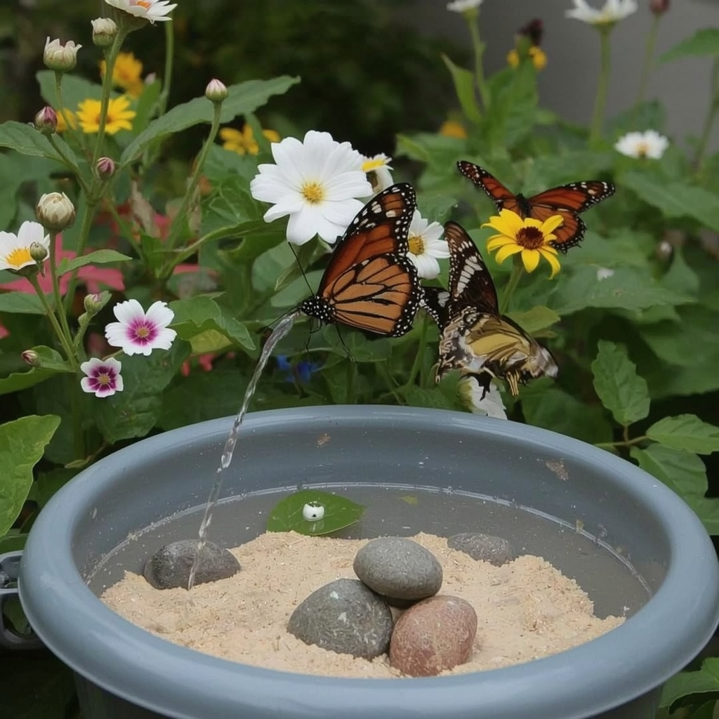 Butterflies, like many pollinators, need water and minerals. A puddling station—usually a shallow container with sand and water—provides a safe place for butterflies to drink and extract essential nutrients.