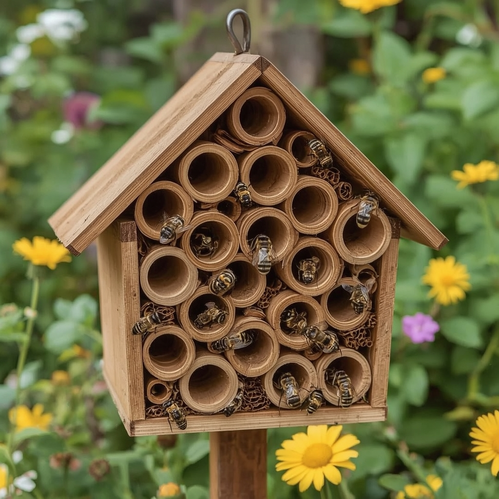Solitary bees require nesting sites to reproduce, and bee hotels provide safe, structured habitats for these essential pollinators. Constructed from bamboo tubes, drilled wood blocks, or bundled twigs, bee hotels encourage solitary bees to lay eggs in a protected environment.