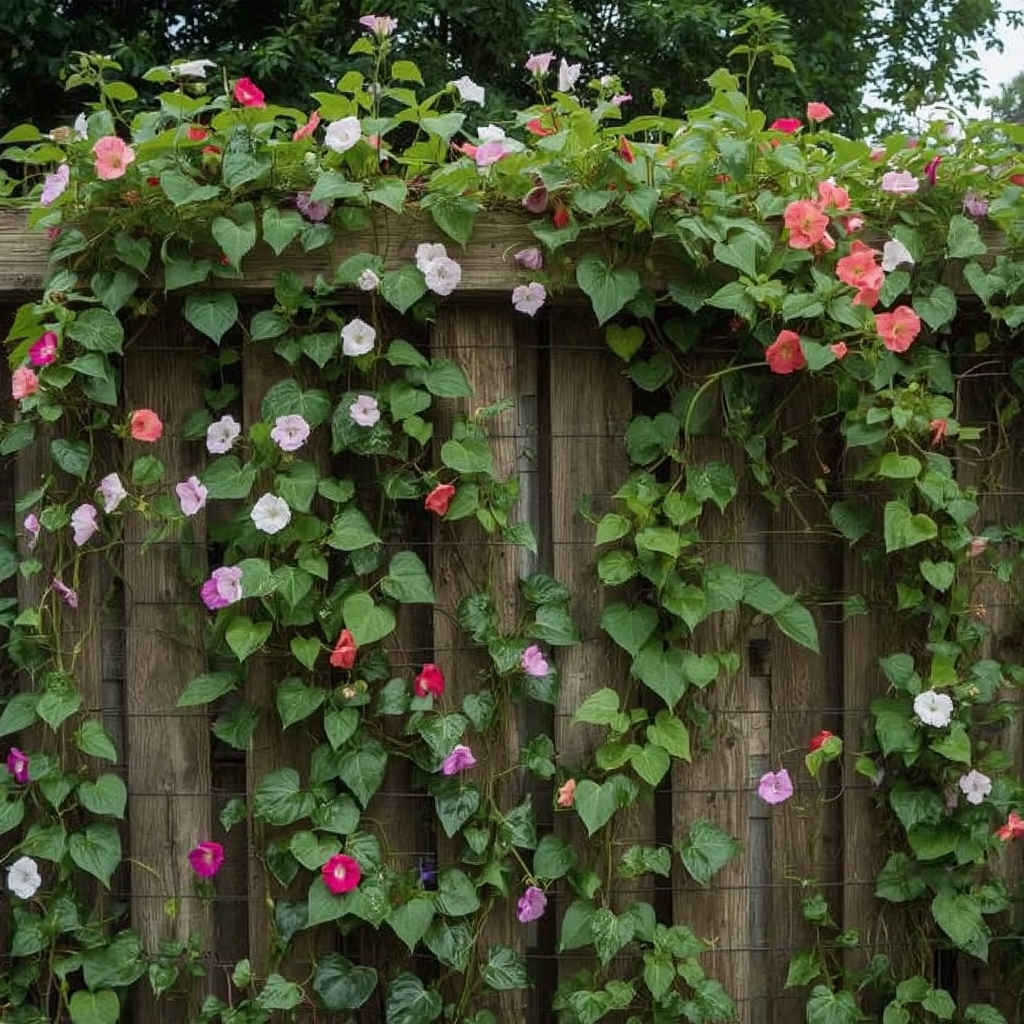 Climbing plants on trellises or fences are excellent for attracting pollinators while maximizing vertical garden space. Vines like morning glories, clematis, and honeysuckle provide both nectar and shelter for bees, hummingbirds, and butterflies.