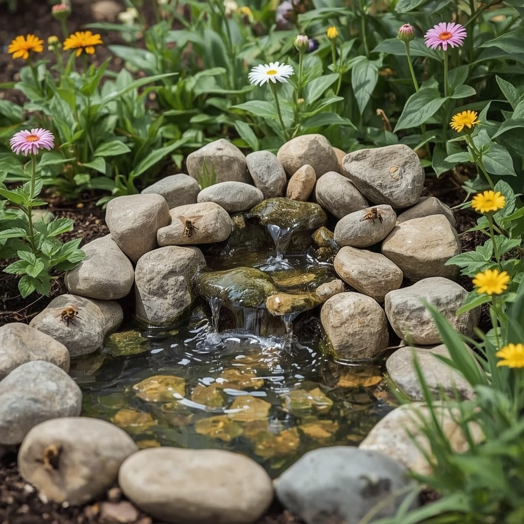 Adding gently sloped edges or stones provides safe landing spots for insects. Pairing water sources with flowering plants ensures that pollinators have access to both hydration and food, creating a balanced and supportive environment.