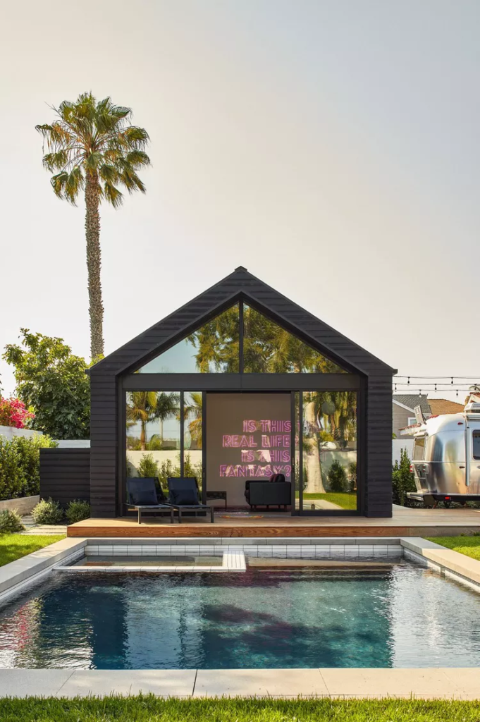 Painting a pool house in black creates a sharp, contemporary appearance that feels polished and modern. Dark exteriors paired with matching furnishings help establish a cohesive and streamlined look that stands out without feeling overwhelming. Adding a pop of color through lighting or décor can bring personality and contrast to the space.