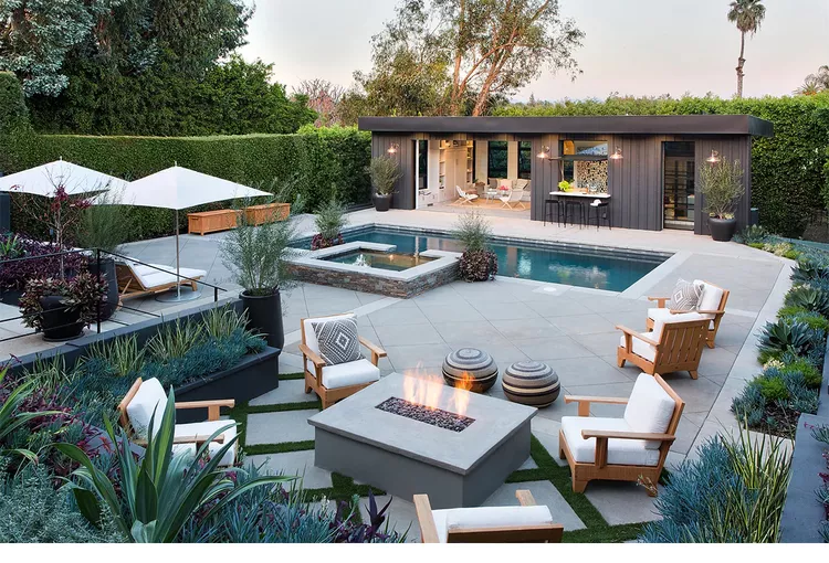 Adding a patio area in front of the pool house expands its functionality. Outdoor seating, dining, or cooking zones encourage socializing and make the structure feel like an extension of the main home.