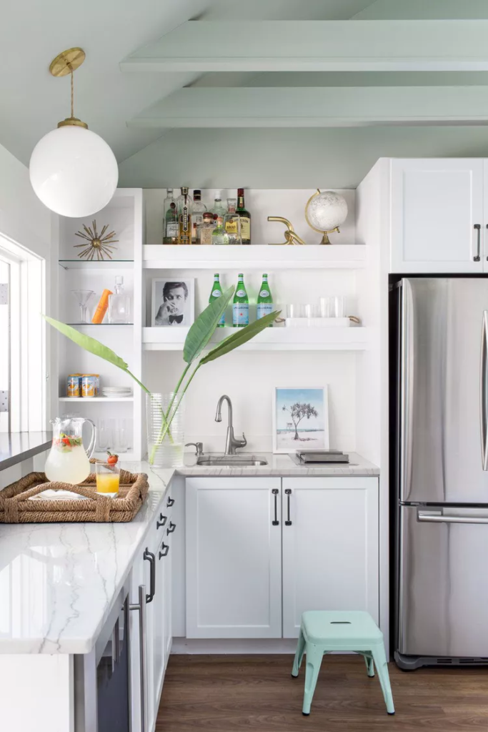 Floor-to-ceiling storage helps make the most of limited space in a pool house. Shelving can be both functional and decorative, keeping essentials organized while adding personality.