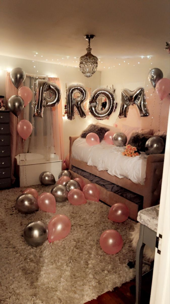 For a chic and modern promposal, balloons are a fantastic choice. Whether you opt for metallic shades, themed colors, or playful arrangements, balloons can instantly elevate the setup.