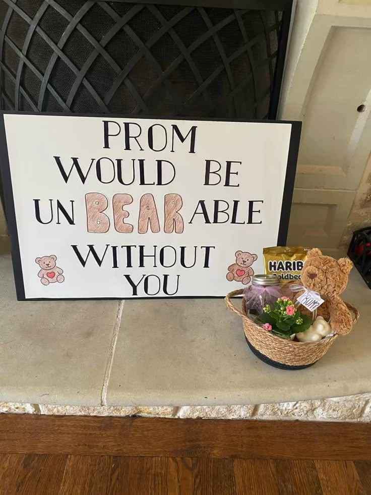 Puns like “UnBearable” offer a clever and fun way to ask someone to prom. Using stuffed animals or bear-themed items makes the setup engaging and adorable.