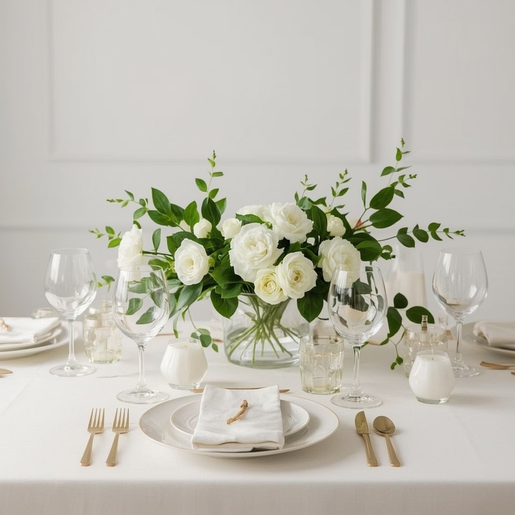 Fresh flowers should be the highlight of each table. Consider small arrangements featuring tulips, ranunculus, or seasonal mixed blooms in delicate vases. Keep centerpieces low to encourage conversation and create a welcoming atmosphere.